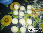 Тесто разделить на маленькие части, размером примерно в теннисный мячик.