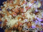 В салатник к рыбе добавляем отварной рис (рис я варю без соли).