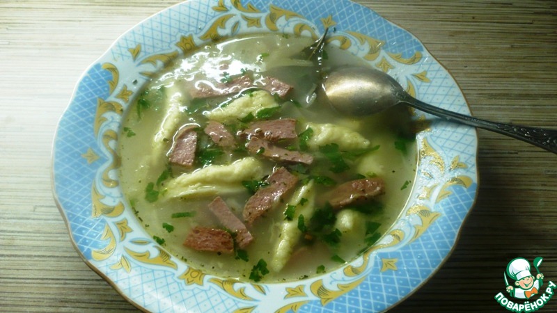 Кидаем клецки в кипящий (к тому времени) суп и ждем, пока они всплывут.