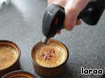 Перед подачей на стол посыпать коричневым сахаром и поставить под гриль или с помошью специального прибора как у меня расплавить сахар. Получится приятная хрустящая карамельная корочка. А в сочетании с нежным кремом... мммммм. Можно подавать как горячим, так и холодным.