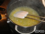 Приготовить соус. Для этого взять кастрюлю, положить в нее масло, сметану и сахар. Довести до кипения и, убавив огонь, проварить еше 3 мин.