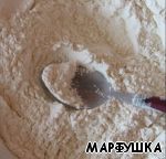 Муку смешиваем с разрыхлителем и солью, обе массы соединяем.