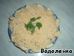 Сверху натереть твердый сыр. При желании украсить зеленью.