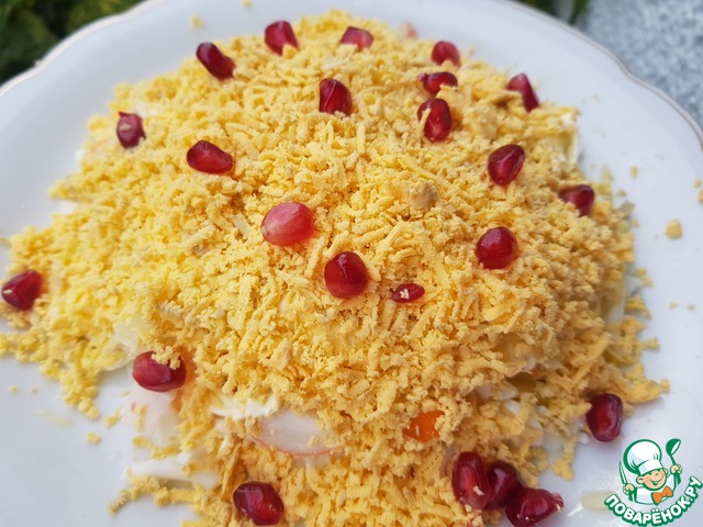 В салатницу выкладывать слоями, промазывая каждый слой майонезом:
