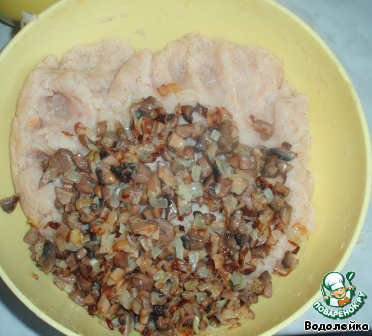 Соединяем фарш и грибы. Хорошо перемешиваем и пробуем на вкус.