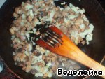 Обжариваем грибы с луком (количество грибов брать по желанию,у меня грамм 300 было).