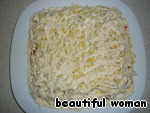 Верхним слоем выкладываем тертые яйца, сетка из майонеза.
