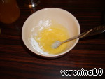 Отделяю желтки от белков, в желток добавляю ванильный сахар и взбиваю до однородной массы.