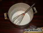 Белки смешиваю с 1 стаканом сахара и взбиваю до состояния крема, ставлю в холод.