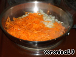 в глубокой сковороде разогреть масло, выложить морковь и лук для обжарки.