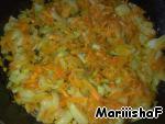 Лук нарезаем кубиками, морковь трем на крупной терке. Все пассеруем на растительном масле до золотистого цвета лука. -
