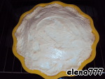 Через положенное время вынуть форму, выложить белково-кокосовую массу на бисквит и размазать. -