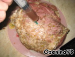 Делать уколы нужно по всей поверхности, сантиметр за сантиметром, и на разную глубину, стараясь заполнить мясо как можно равномернее до тех пор, пока весь рассол не окажется внутри -
