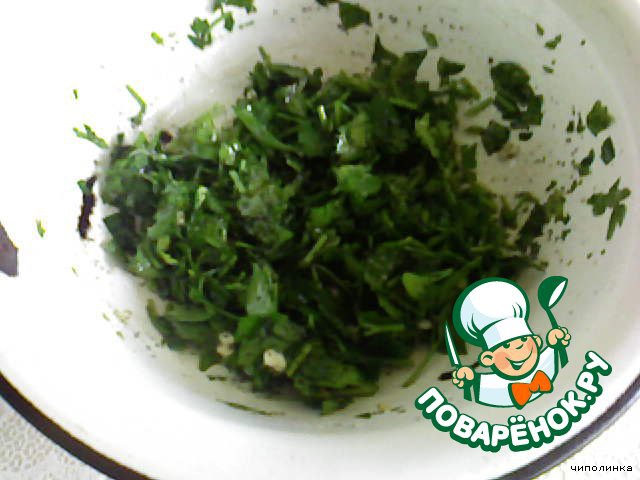 • Смешать с солью, чёрным молотым перцем, растительным маслом, уксусом или лимонным соком.