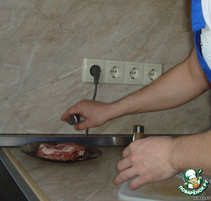 Шейку тонко режем (не толще 1 см) и хорошо отбиваем (должна стать почти прозрачной, 3-4 мм).