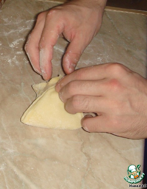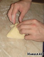 Квадратами раскатываем тесто.