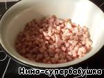 Ветчину нарезать маленькими кубиками.