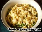Добавить орехи, соль и майонез. Перемешать.