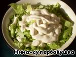 Выложить на листья зеленого салата. Украсить зеленью.