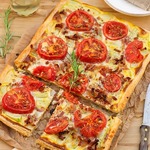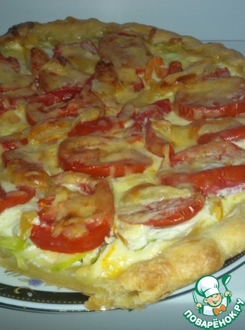 Так захотелось к ужину приготовить что-нибудь вкусненькое и необычное. Порылась по сусекам, нашла в морозилке слоеное тесто. И родился вот такой пирожок. Муж сказал, что это покруче пиццы будет. Быстро и очень-очень вкусно!!!