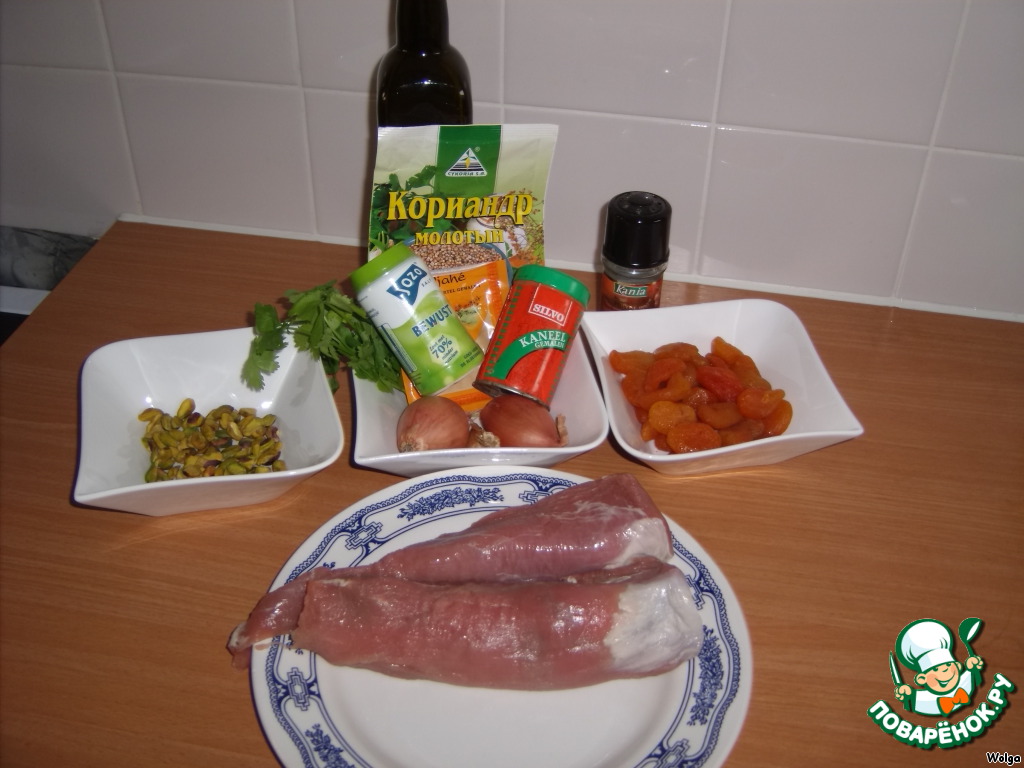 Ингредиенты для «Рулетики из свинины с абрикосами и фисташками»: