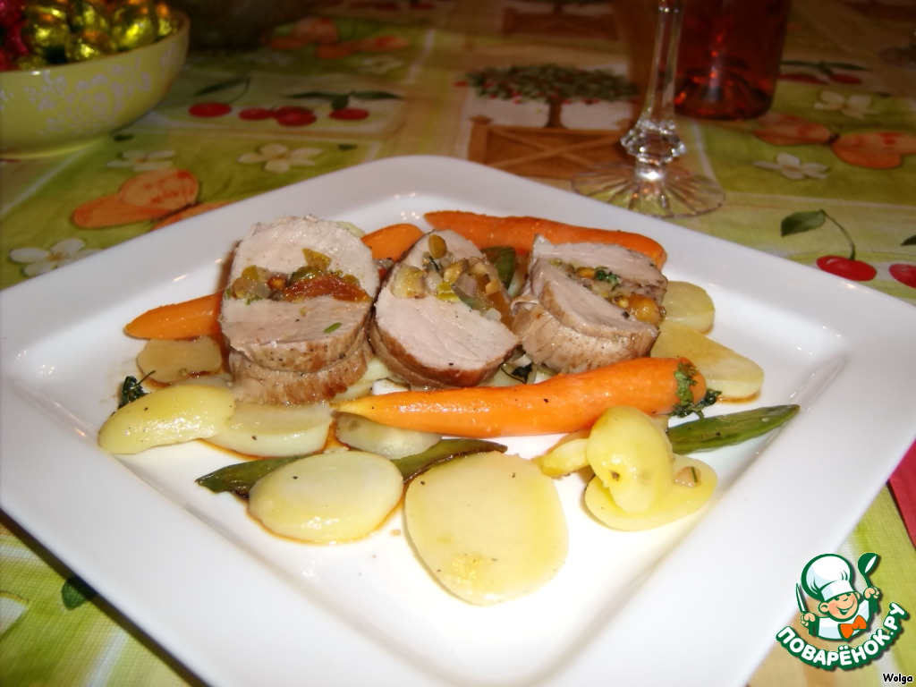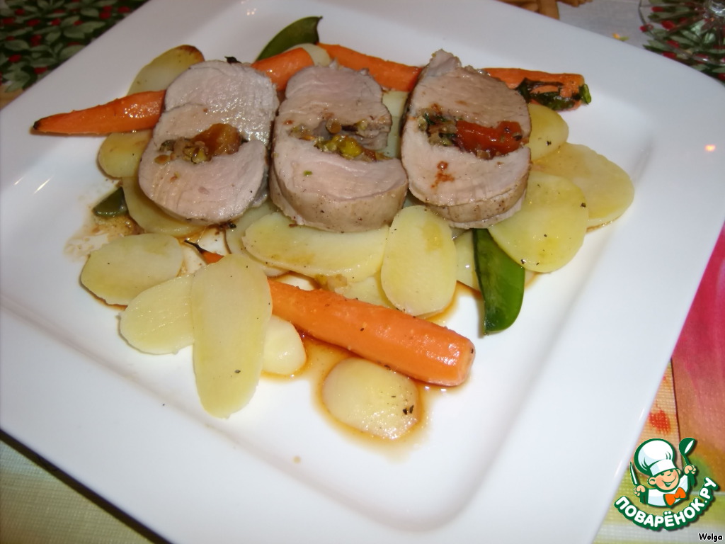 Рецепт «Рулетики из свинины с абрикосами и фисташками»:
