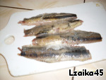 Селёдочку почистить, удалить кости и разобрать на филе...