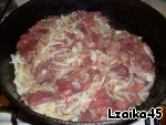 Подготовленную печень нарезала соломкой, лук - полукольцами... -