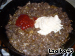 Сметану и кетчуп. Перемешала, влила немного бульона и оставила потушиться минут на 5...