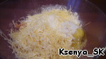 К картофелю добавляем тертый сыр, яйцо, муку и соль. Все перемешиваем.
