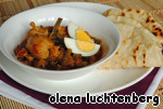 Подавать блюдо с вареным яйцом и рисом или, намного аутентичней и вкусней, с лепешками роти https://www.povarenok.ru/recipes/show/42887/