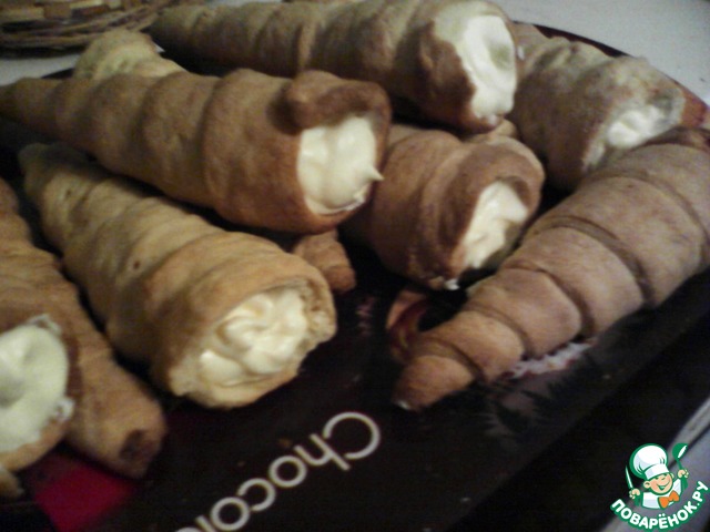 Из этого теста очень хорошо готовить не только трубочки, но и различные вертушки и рулеты с фруктовыми начинками.