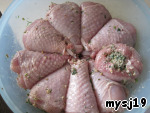 Фаршируем наши голени этой пастой. Остатками смазываем голени сверху. Закрываем крышкой и отправляем в холодильник как минимум на час. Готовлю обычно на следующий день