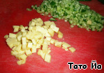 Готовим начинку. Для этого мелко нарезаем огурец и сыр кубиками