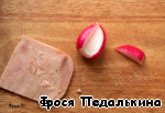 В середине редиса делаем выемку. Редис лучше брать с хвостиком.