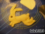 Сделать все соответствующие надрезы. Затем стягивать тесто таким образом, чтобы придать ему фигурку зайца. Подогнутая часть на картинке - это передние ножки, а две полоски подлиннее - это задние, надо эти полоски оттянуть назад, при этом может появиться излишек теста на спинке, его просто подвернуть под туловище, подрезать ничего не надо.