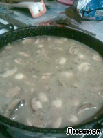 Крахмал развести в бульоне или в воде и добавить к грибам, как только выпарится лишняя жидкость. Потушить до загустения.