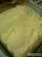 Форму смазать маслом и посыпать сухарями. Выложить 1/2 картофельного пюре.