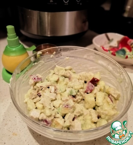 Авокадо с яблоком также нарезать кубиками и полить соком лимона, чтобы не потемнели. -