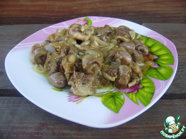 Рецепт «Куриные сердечки в чесночно-имбирном соусе»: