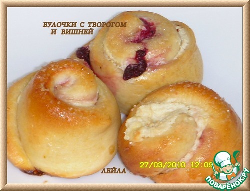 Рецепт «Булочки с творогом и вишней»: