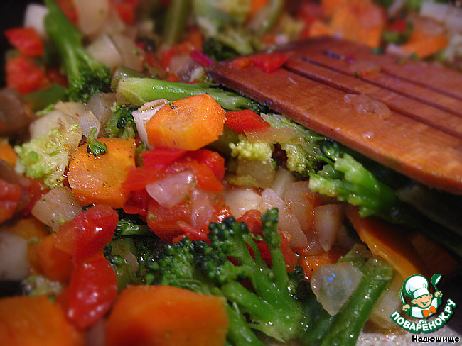 кладем на сковородку овощи и тушим их до готовности. В моих овощах не было морковки, поэтому я добавила "свою" )