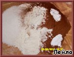 Смешать отдельно сухие ингредиенты (просеянная мука, соль, сода, какао-порошок, сахар)