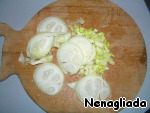 4. Нарезаем лук не толстыми и не тонкими кольцами.