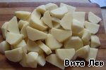 Картофель чистим, режем. Заливаем водой и ставим вариться, после закипания солим.
