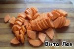 • Морковь чистим, режем кусочками, можно закладывать в кастрюлю сразу сырой,