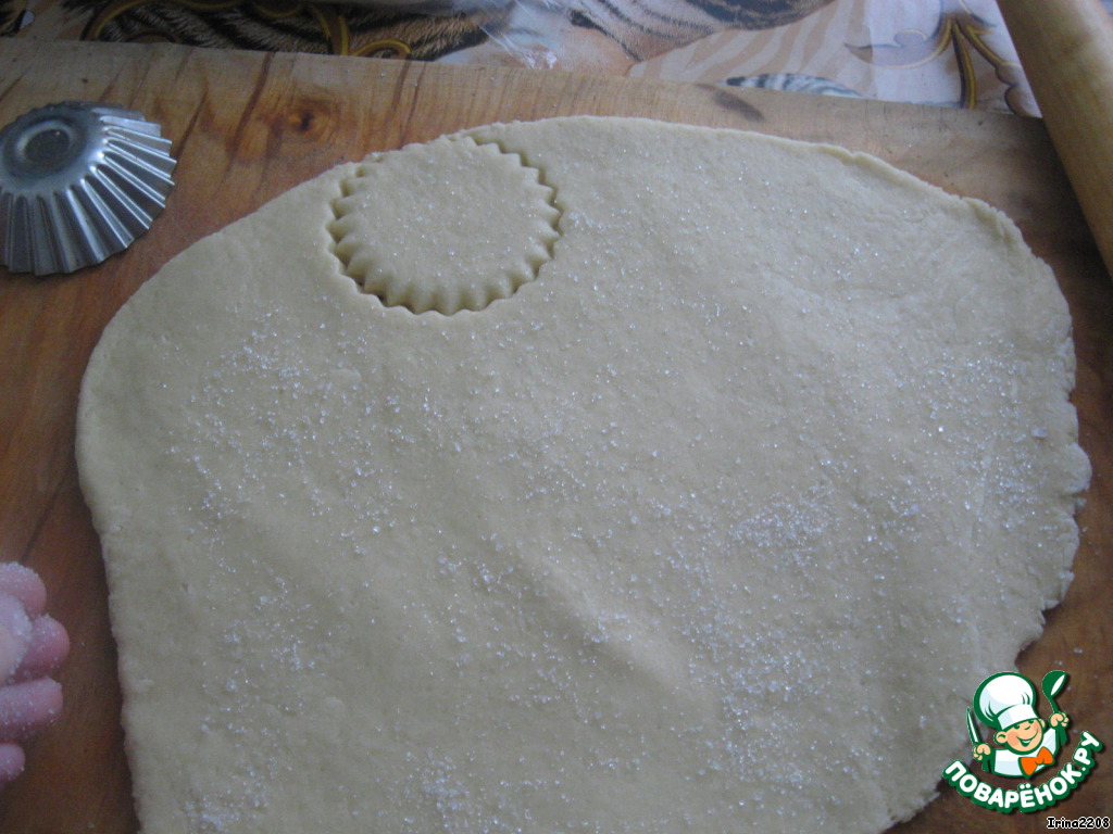 Раскатать тесто (не тонко, чтоб изделия были более пышными), посыпать сахаром и вырезать коржики произвольной формы.