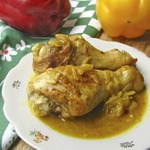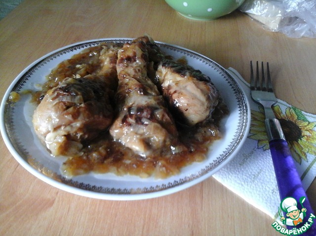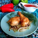Курицу разрезать на порции (у меня были куриные бедрышки), посыпать приправами, посолить, поперчить и натереть толченым чесноком. Оставить на полчаса-час.