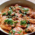 Впервые приготовила это блюдо на даче. Мы были с мужем вдвоем. Получилась такая вкуснятина, что не могли оторваться... Уж и наелись, а рука все так и тянулась обмакнуть кусочек хлеба в соус и отправить его в рот. Готовится быстро. Съедается еще быстрее. Вчера вот сделала снова, порадовала своих. Присоединяйтесь!!!
