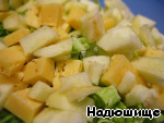• Как всегда - посолить, поперчить по вкусу и заправить... не смотрите на меня так строго ... :) кефиром и йогуртом. Легкая сладкая нотка придает салату нежность.
